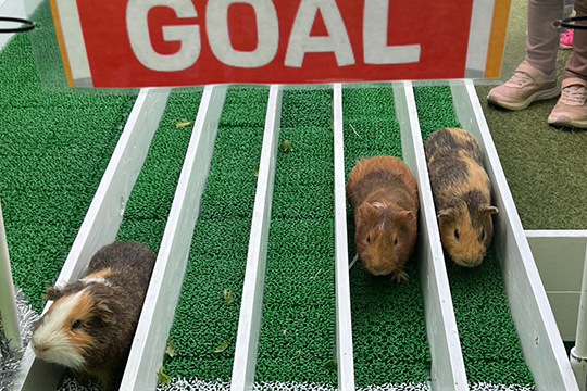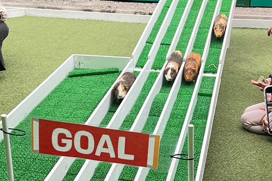 かわいいモルモットたちによるレース!優勝賞品の野菜トロフィーを目指して無事にゴール出来るか?